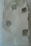 2005Detailopname waarbij het handgeschepte papier en de textielstructuur goed zichtbaar is.