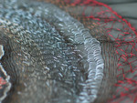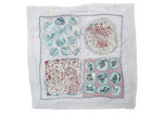 2004Detailopname van borduurwerk. Het werk is ingelijst tussen 2 glazen platen.