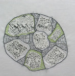 De borduurtechniek speelt een belangrijke rol in mijn werk. Ik combineer textiel met papier en maak gebruik van de eigenschappen van de materialen. Naald en draad is mijn gereedschap. Onder mijn handen groeien structuren: vormen die zonder vooropgezet plan ontstaan en tijdens het maakproces een eigen leven gaan leiden.