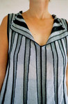 2008Het truitje is dwarsgebreid. De gebruikte techniek is 'plaiting'; 2 verschillende draden worden tegelijkertijd gebreid waardoor er een optische kleurmenging ontstaat.